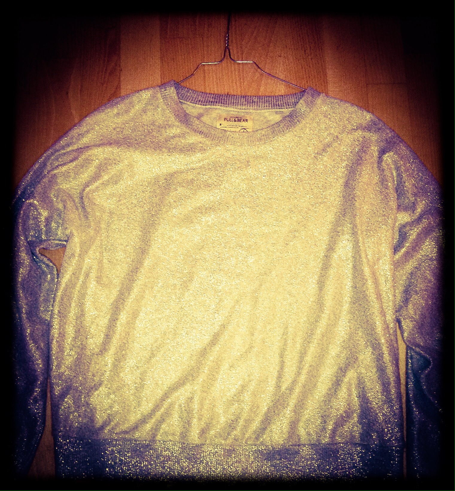 I love wearing my Pull and Bear metallic sweater. [see picture above] It is comfortable, trendy, classy and matches most of my outfits. You can buy a similar one at Forever 21 [picture underneath] (you are lucky, it is on sale http://www.forever21.com/Mobile/Product/Product.aspx?br=LOVE21&category=contemporary-main&productid=2000179021 )