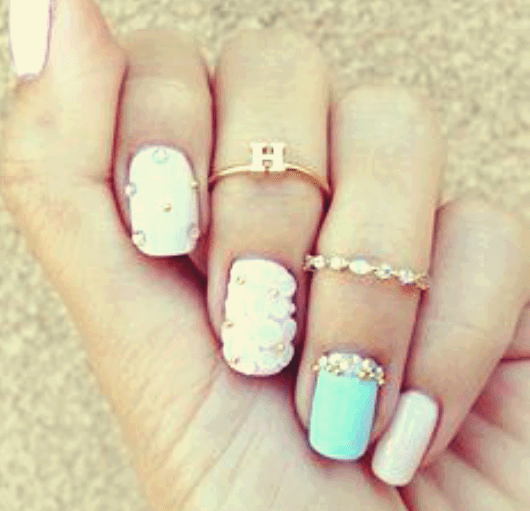 Softly push your cuticles away applying petroleum jelly on your nails. Then paint your nails with colours that you like (but wait a few minutes to do so because otherwise your nail vanish will be sticky -I know, it happened to me once)