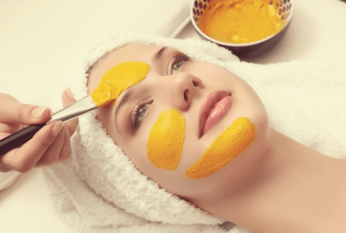 Mix 1/2 to 1 teaspoon of tumeric with 1 tablespoon of moisturiser 1 tablespoon of milk and the juice of a tomato. Apply for 10minutes where needed. Remove with water.
