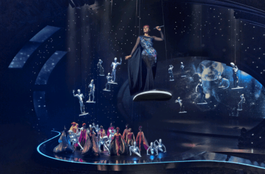 Thierry Mugler’s World is known for its extravaganza. Aliens, otherworldly and sci-fi creatures are part of it. Thierry Mugler not only designs clothes and develops perfume projects. He also has a show right now, in which talented individuals perform, while wearing his extraordinary creations and outrageous make up.