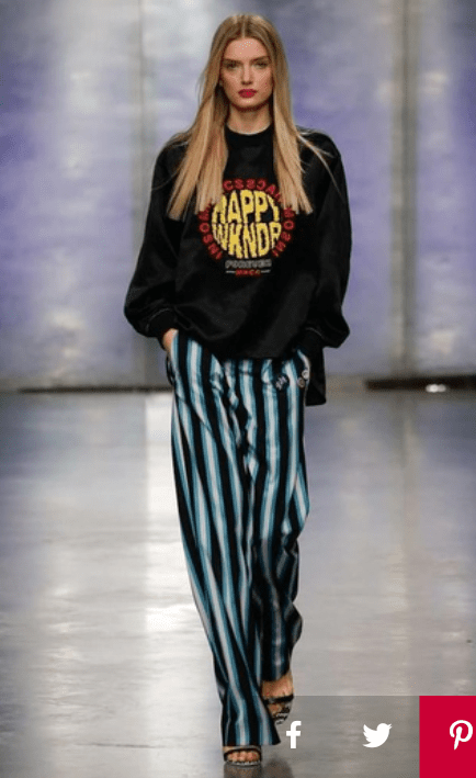 ->You can pair a striped mini skirt with a crop top like Bella did for Hilfiger’s SS 2017 fashion show: