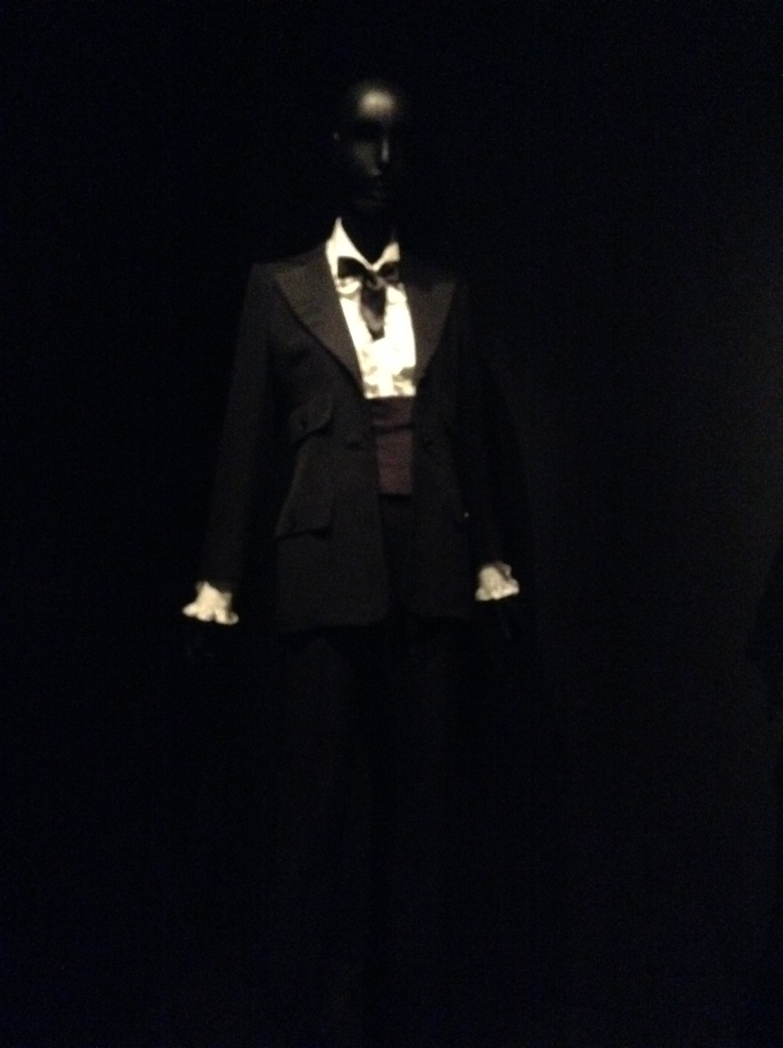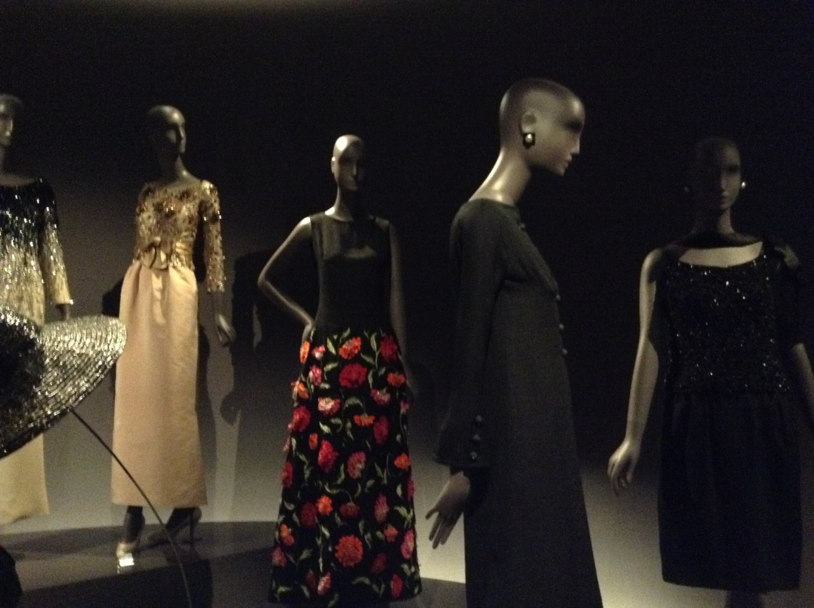 The first section of the exhibit displays the key pieces of YSL’s style. They are men clothes imagined and rearranged for a feminine clientele. These pieces are a mixture of masculine cuts, comfort and womenly touches of simplicity and elegance.