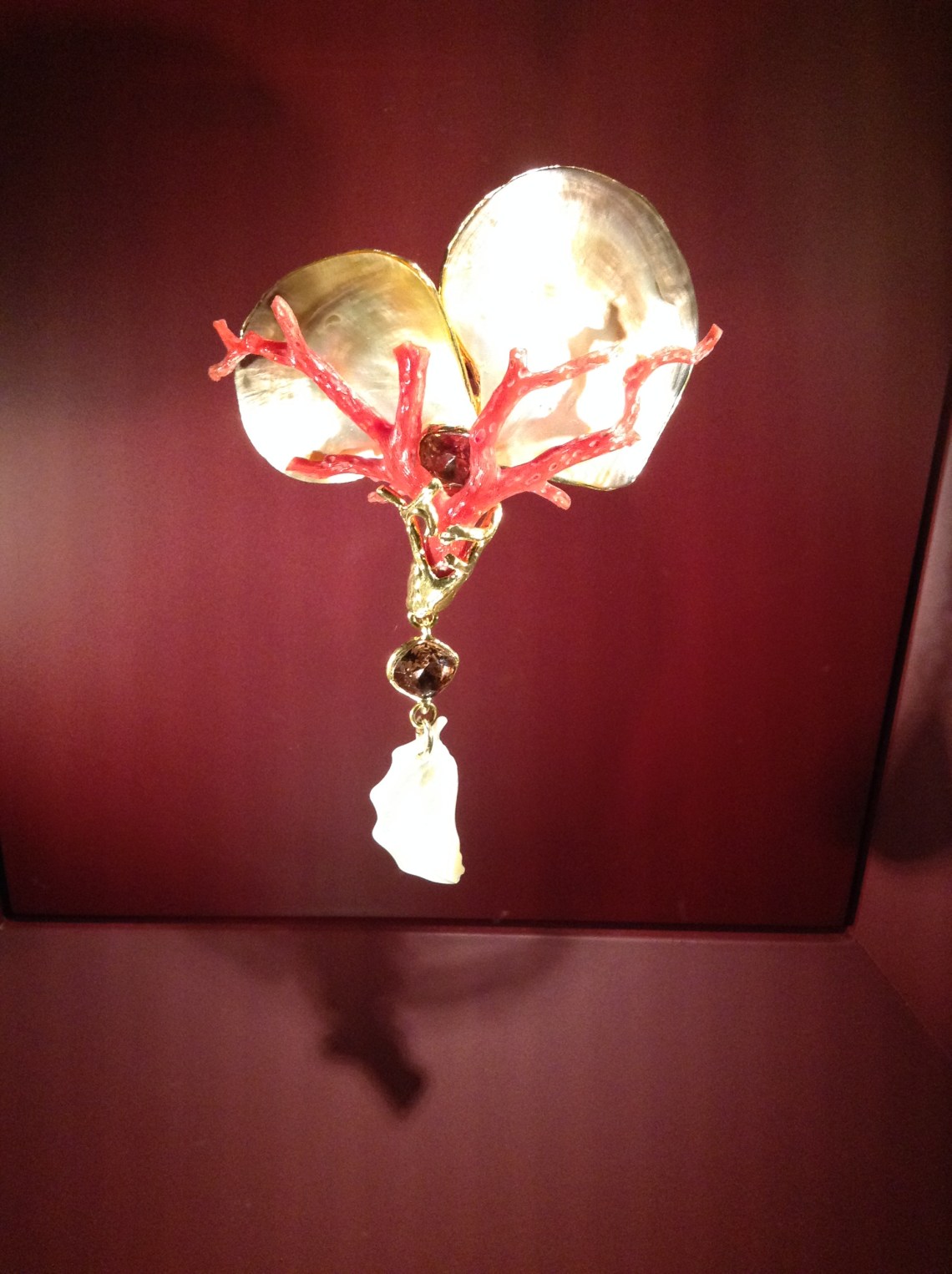 Pendant. SS 2002. Shells, coral and golden metal.