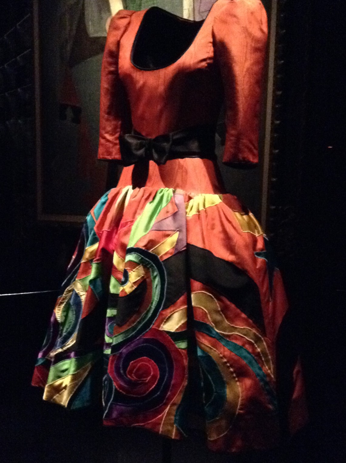 Short night dress. Tribute to Pablo Picasso. AW 1979. Prototype. Faille, satin, Silk velvet. Knotted belt made with silk satin.