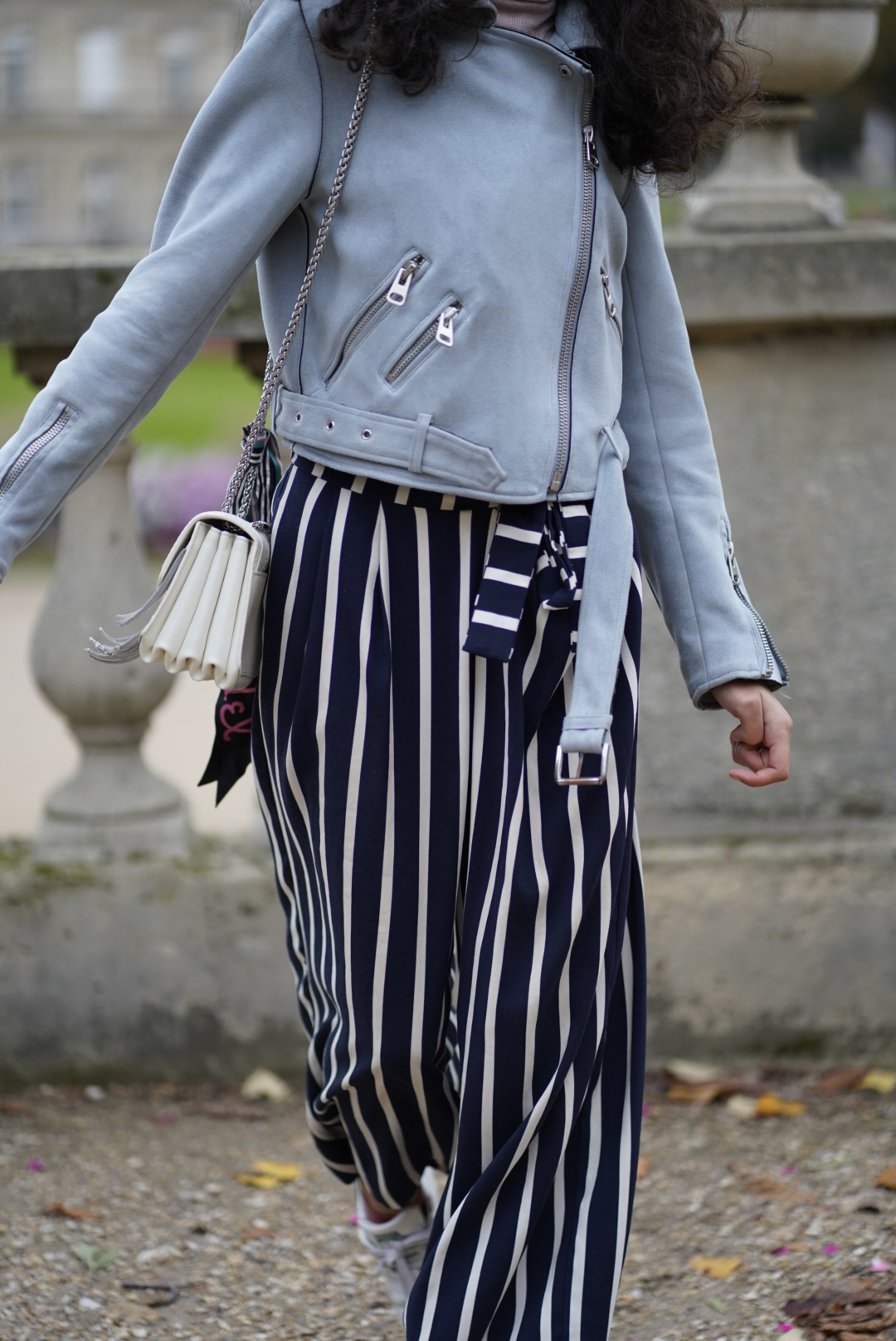 Seen at the Chloé fashion show, the chain bag is a major trend right now. My chain bag is from Claudie Pierlot and I love it. As shawls are in as well -they were spotted especially during the Céline fashion show- I wraped one of my Henri Bendel’s shawl around it and I am really happy about the final look! You can also rock the shawl trend with a shawl around your neck or twisted in your hair.