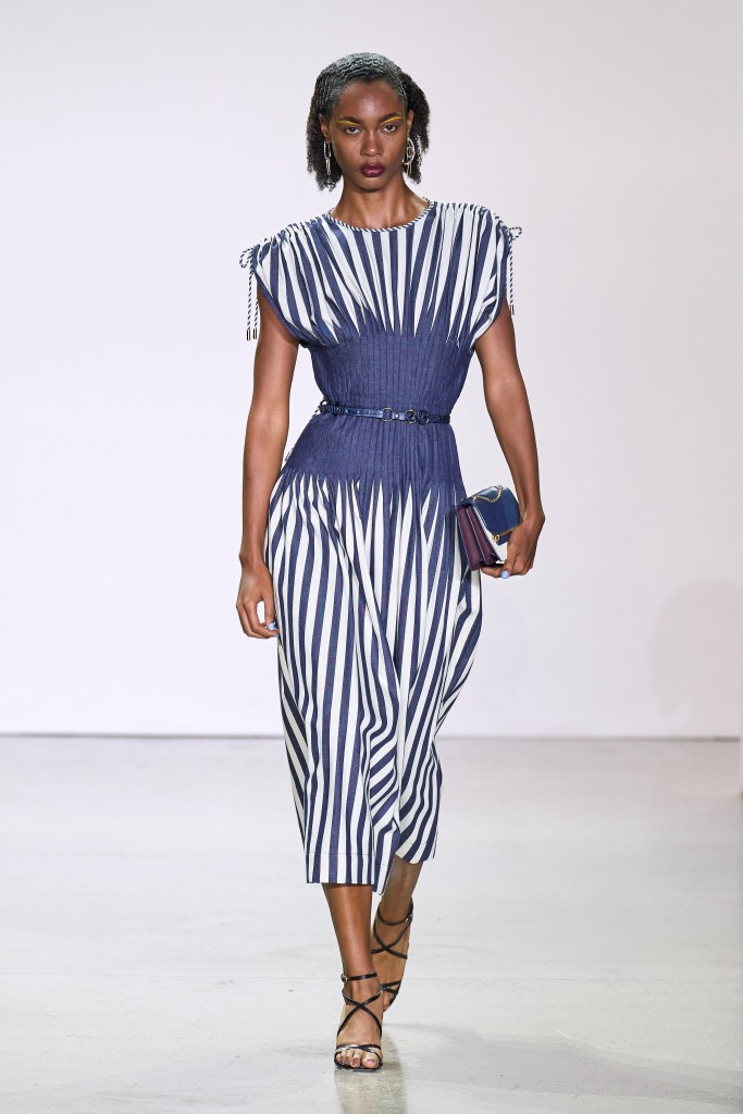 Coco Chanel brought this design into the fashion world in 1919 and it was later adopted by designers Jean Paul Gaultier and Sonia Rykiel. Vertical stripes are especially fashionable (see picture below during the Bibhu Mohabatra show – credits: Vogue runway)