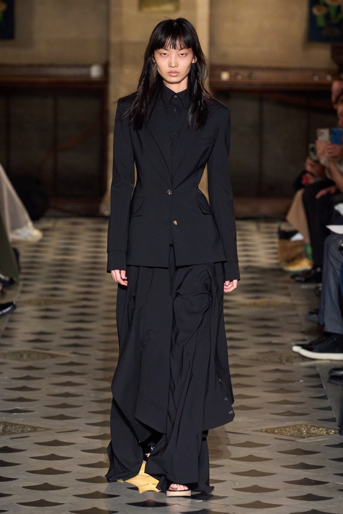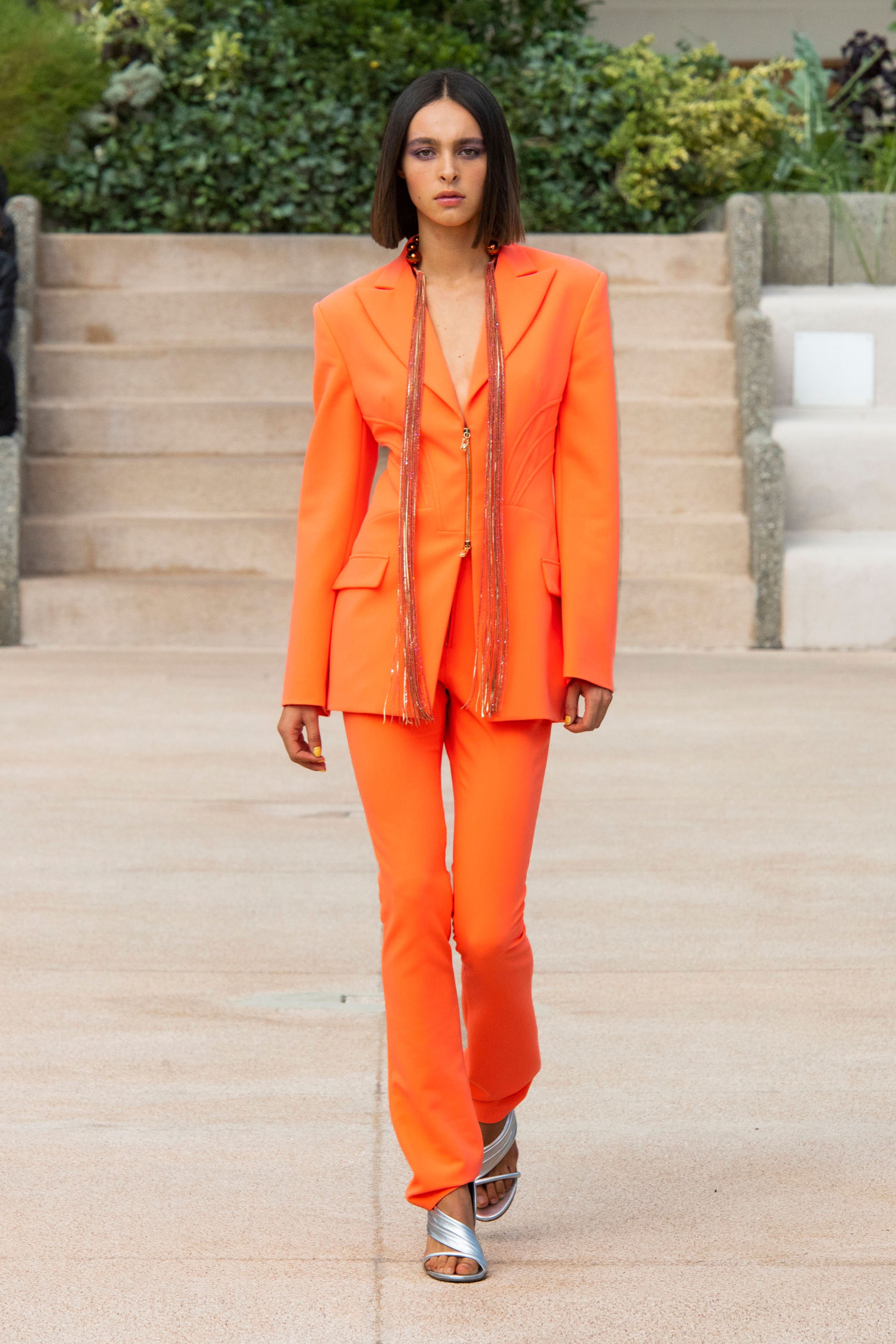 Whether you are heading to work or going out with friends, the tuxedo look is this season’s go-to. You can rock the trend à la Saint Laurent with a black suit or choose a bright hue like an orange or a fuschia piece. (Picture below A.W.A.K.E mode show courtesy Vogue business).