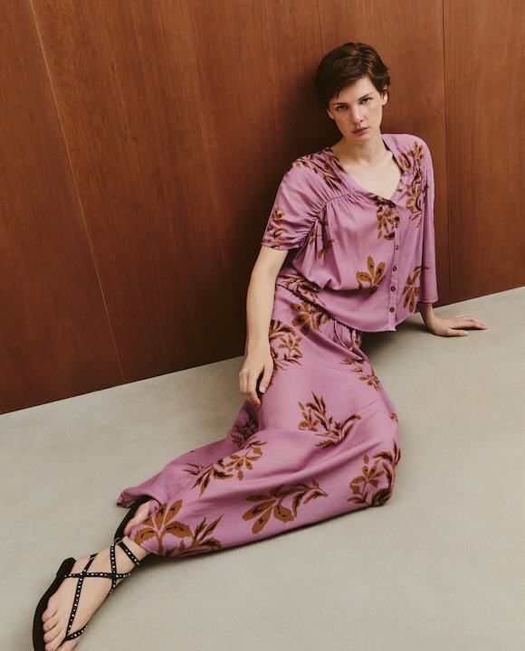 Then for the final touch pick a large colourful printed skirt. I bought a purple one which I love.